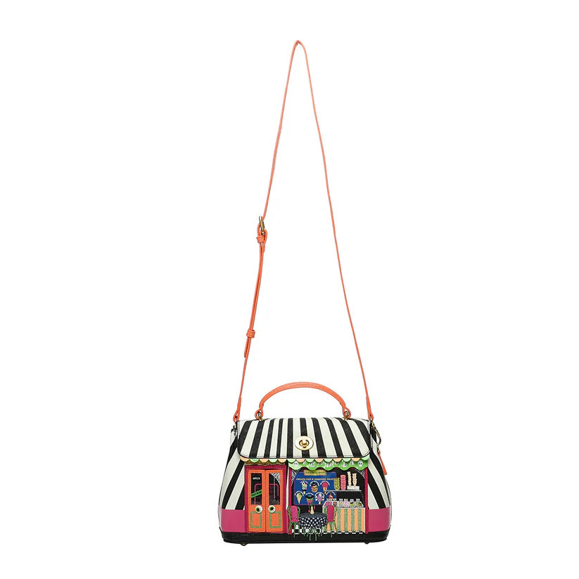 The I-Scream Parlour Mini Grace Bag will be a hit amongst our ‘’Venghoulettes’’, this autumn! This new Vendula bag is a smaller version of the classic Grace Bag, but it is just as roomy with lots of room for your essentials, and pockets galore. It comes with a comfortable handle and a detachable strap, so you can carry the bag like a handbag, over the shoulder or crossbody. Made of vegan leather, this mini grace bag is livelier than the theme may suggest: the vibrant colours, glow in the dark stripes and freaky 3D details give this bag a unique look that you will enjoy showcasing at any occasion. Go on, open the parlour’s doors and have an ice cream: there’s ‘’A fright in every bite’’!