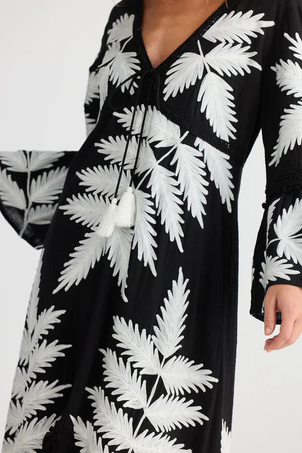 The Livia maxi dress is a gorgeous statement piece featuring an intricate embroidered leaf design that adds a touch of nature-inspired charm. Perfect for twirling under the sun or making an entrance at any event, it also comes in a fun short style for those who want to show a little extra leg. Whether you’re feeling long and flowing or playful and flirty, Livia has you covered with effortless style and a breezy vibe.