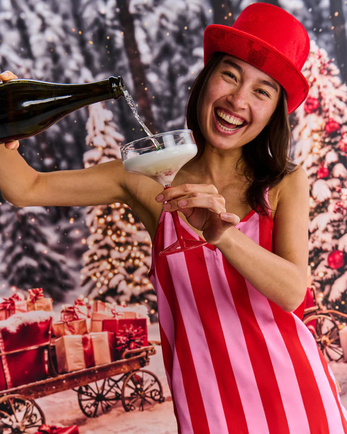 Slip into festive luxury with our Santa Baby Satin Cami Set - a dreamy duo made from recycled eco satin polyester in bold pink and red stripes. Silky-soft and effortlessly chic, it’s the perfect blend of comfort and celebration.