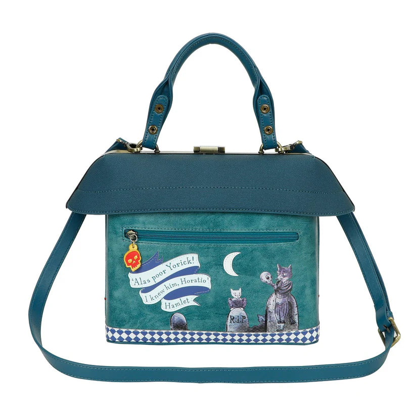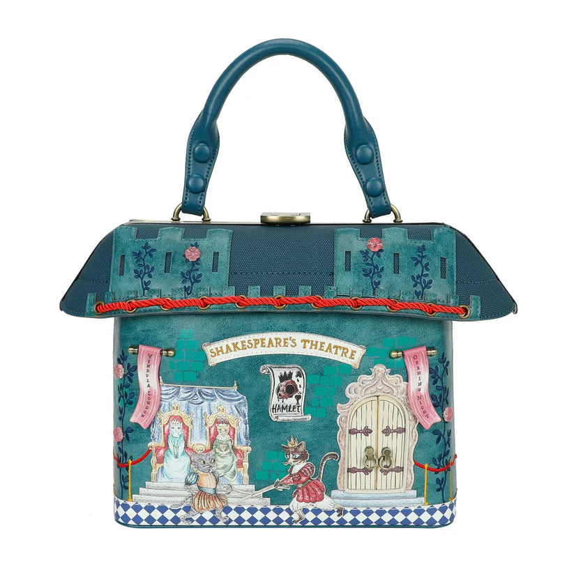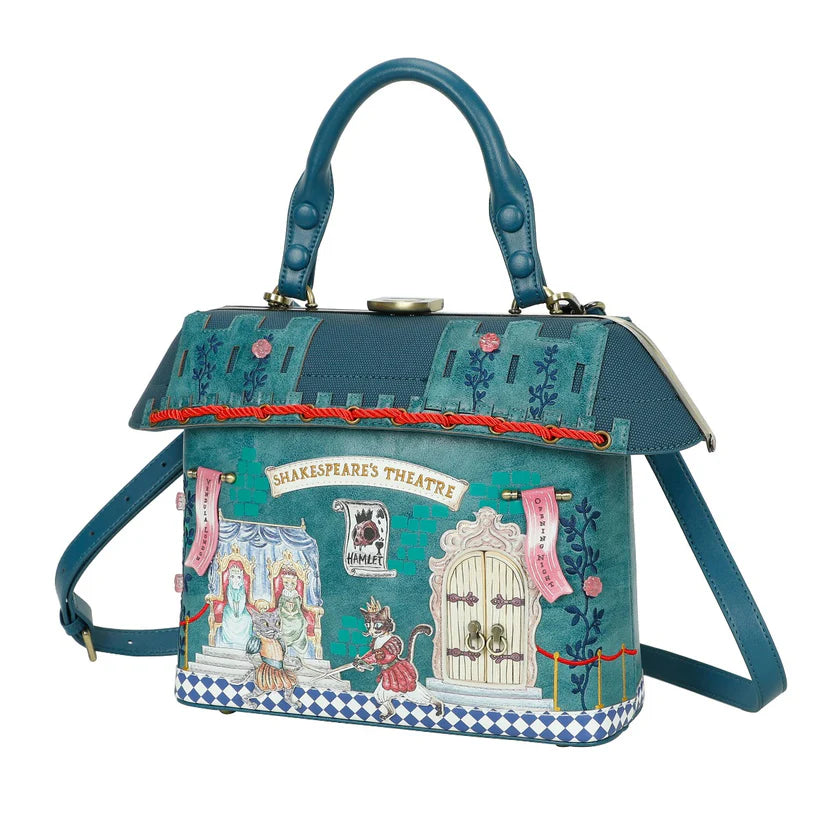 Here’s your season ticket to the most popular venue in Vendula Town! The Shakespeare's Theatre - Hamlet Grab Bag is perfect for daily use or special occasions. It holds all your essentials (and more!) and comes with a detachable handle and strap, allowing you to use it as a handbag, shoulder bag, or crossbody. Crafted from vegan leather, this limited edition masterpiece comes in dark green with sumptuous artwork that combines printed and 3D details inspired by William Shakespeare’s play, Hamlet. This new Vendula London accessory is sure to captivate you and everyone you meet this spring/summer. To buy or not to buy—that is the question!